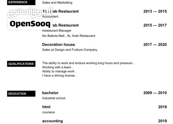 مدير مطعم فندقة ومطاعم موظف الحجوزات عقد دائم دبي مردف 133834672 السوق المفتوح