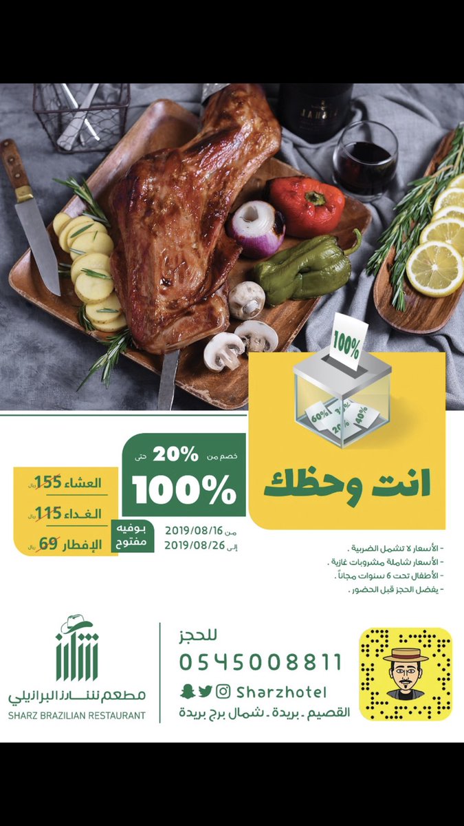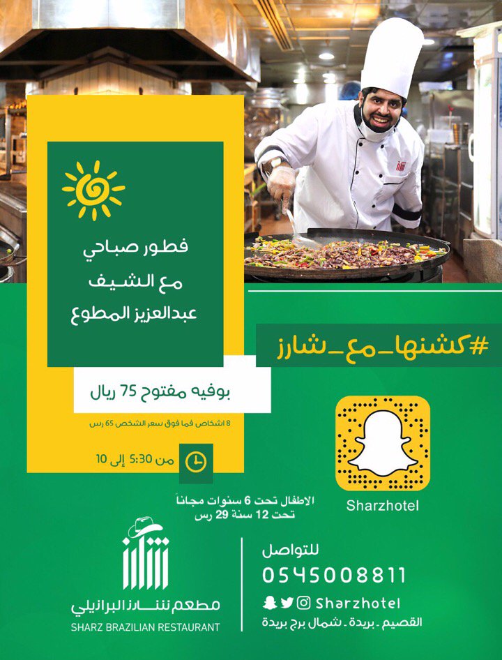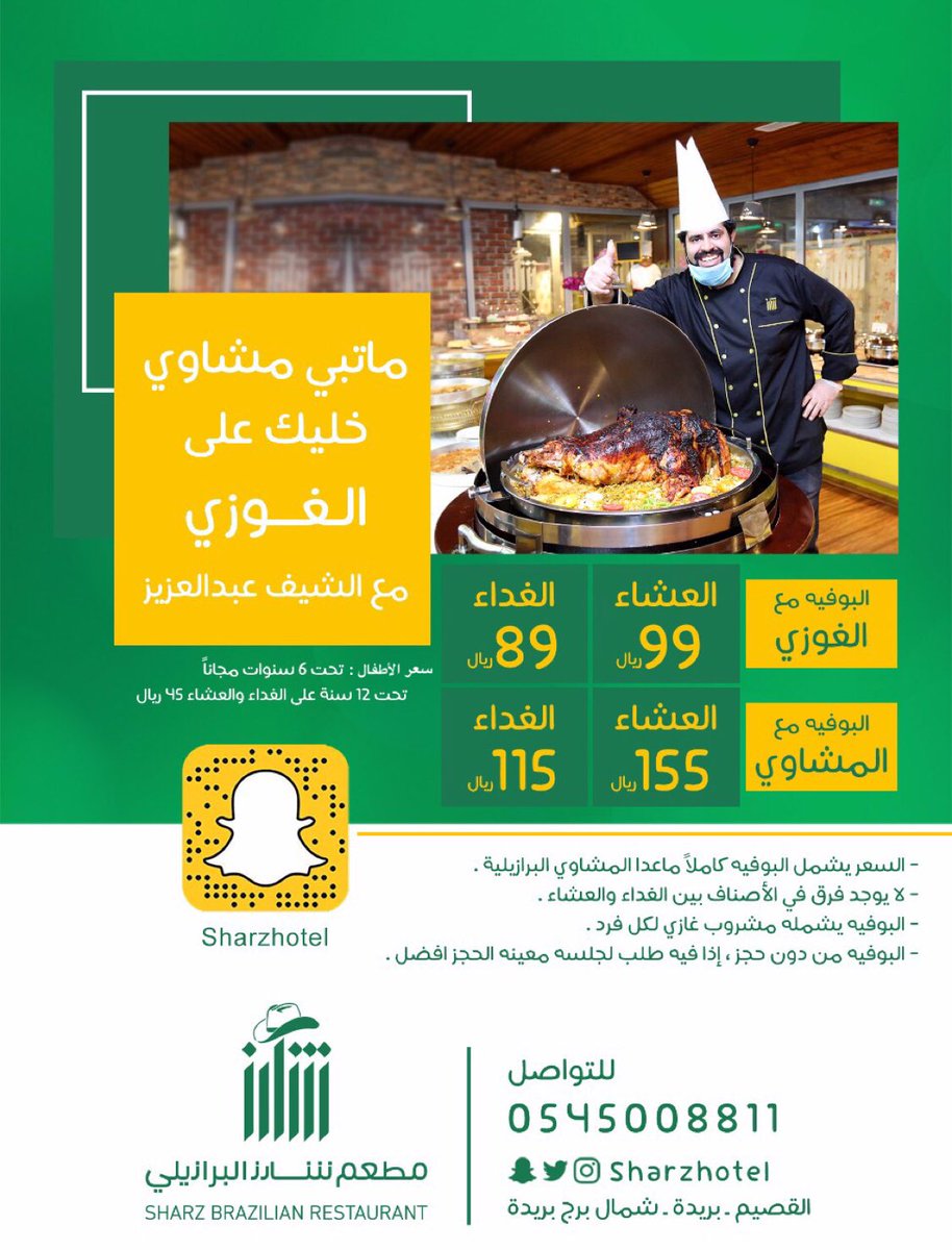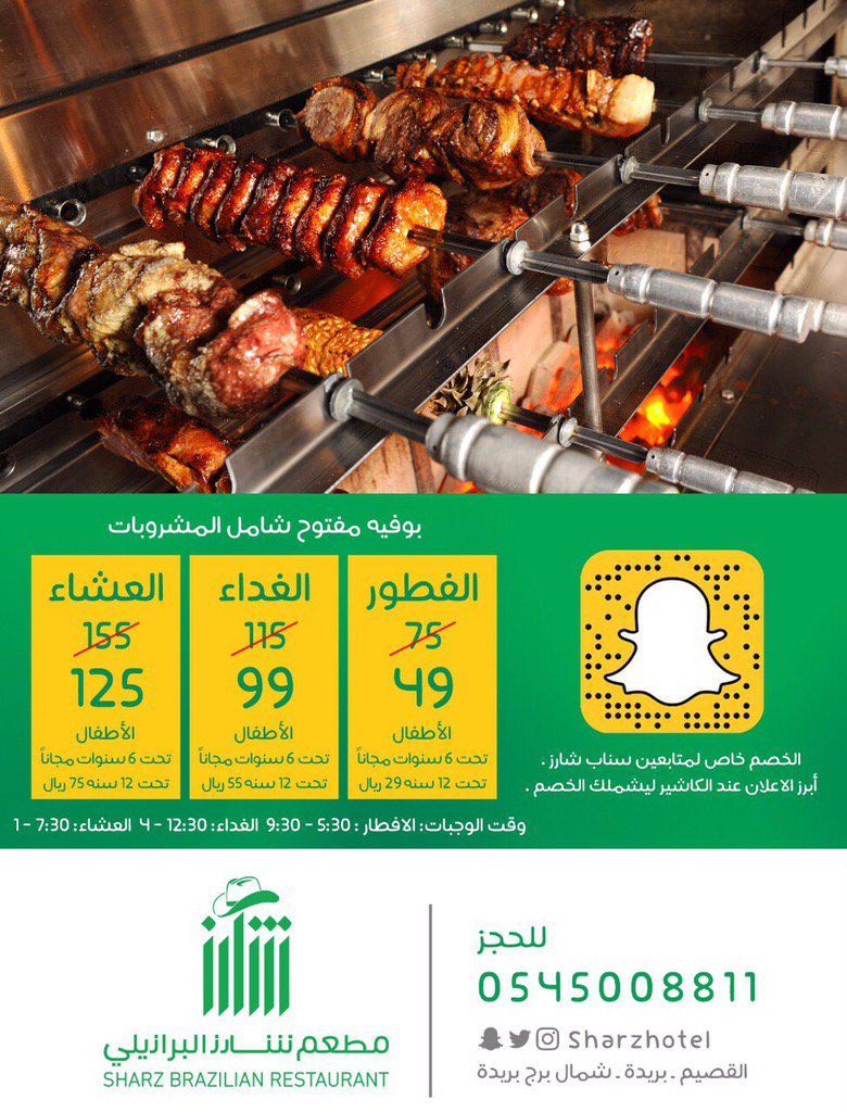 مطعم شارز البرازيلي من أفضل المطاعم اللتي تقدم المشاوي من عدة أنواع من اللحوم مثل النعام والغزال وغيرها يوجد أطلالة رائعة على برج. مطعم وجبات سريعة في بريدة سيفتح في 1230 م الحصول على عرض أسعار الاتصال بـ 055 188 7222 الحصول على الاتجاهات WhatsApp 055 188 7222 مراسلتنا على 055 188 7222 الاتصال بنا حجز طاولة عرض القائمة تحديد موعد إجراء طلب. خصومات هائلة على الفنادق في بريدة المملكة العربية السعودية على الإنترنت.