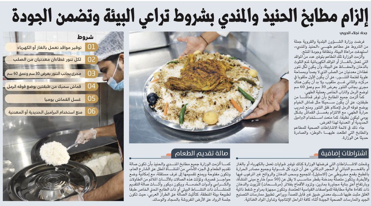 غربة الروح F B I On Twitter منها اشتراط مواقد الغاز أو الكهرباء لمنع التلوث إلزام مطابخ الحنيذ والمندي بشروط تراعي البيئة وتضمن الجودة والنظافة الوطن وداعا لمندي وحنيذ الحطب والفحم Https T Co A9ue2s7ddr