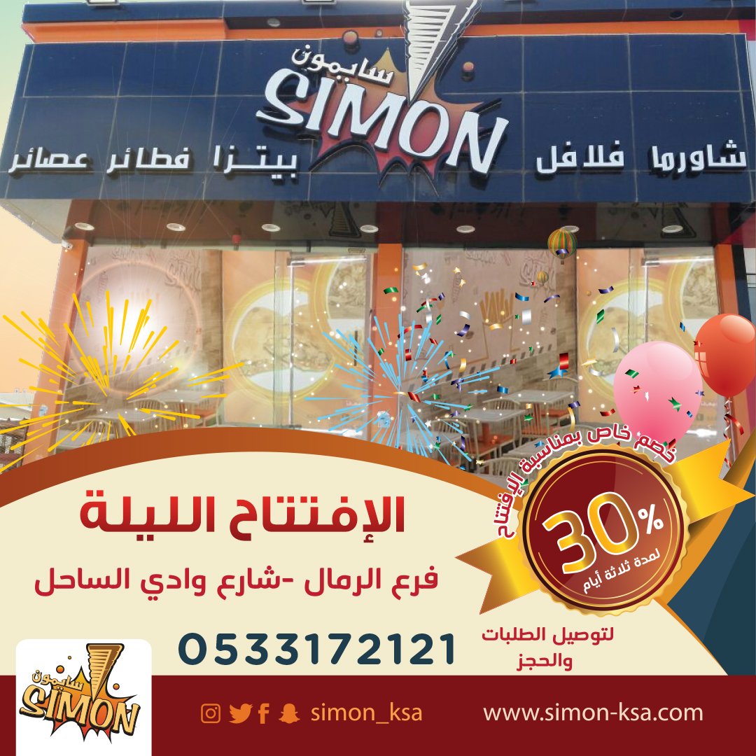 مطاعم سايمون On Twitter نتطلع الى خدمتكم الليلة بكل شغف في فرعنا الثاني الرياض حي الرمال شارع وادي الساحل خصم خاص 30 افتتاح مطاعم سايمون Https T Co Csxvmk5qam