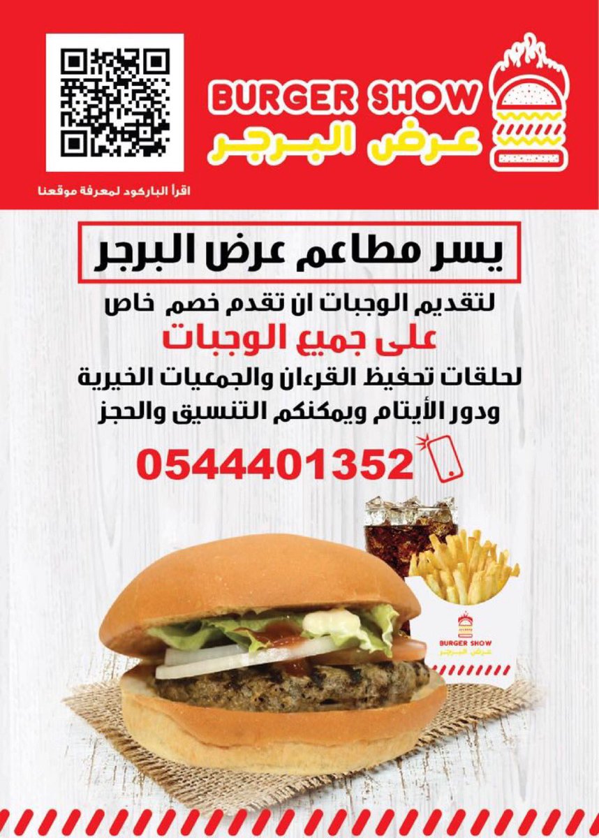 حي الرمال الرسمي On Twitter إعلان تقدم مطاعم عرض البرجر بـ حي الرمال عرض خاص لحلقات القرآن والجمعيات الخيرية ودور الأيتام للتواصل 0544401352 بالتوفيق للجميع Burgar Show Https T Co T5vqvjqkql