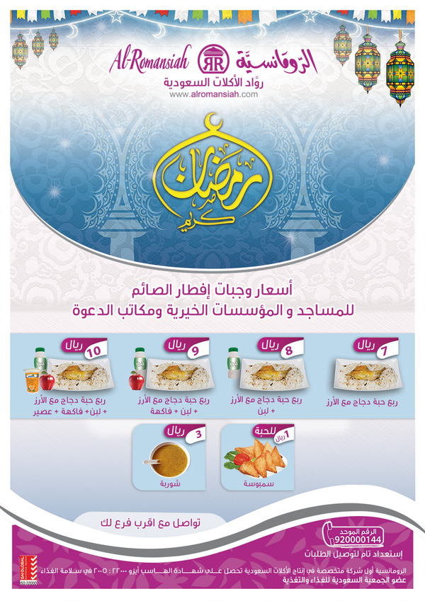 الرومانسية Twitterissa شركة مطاعم الرومانسية تهنئكم بقرب حلول شهر رمضان وتعلن لكم عن بدء حجز وجبات افطار الصائم بأسعارخاصة للمؤسسات الخيرية Http T Co Fhbuesljch