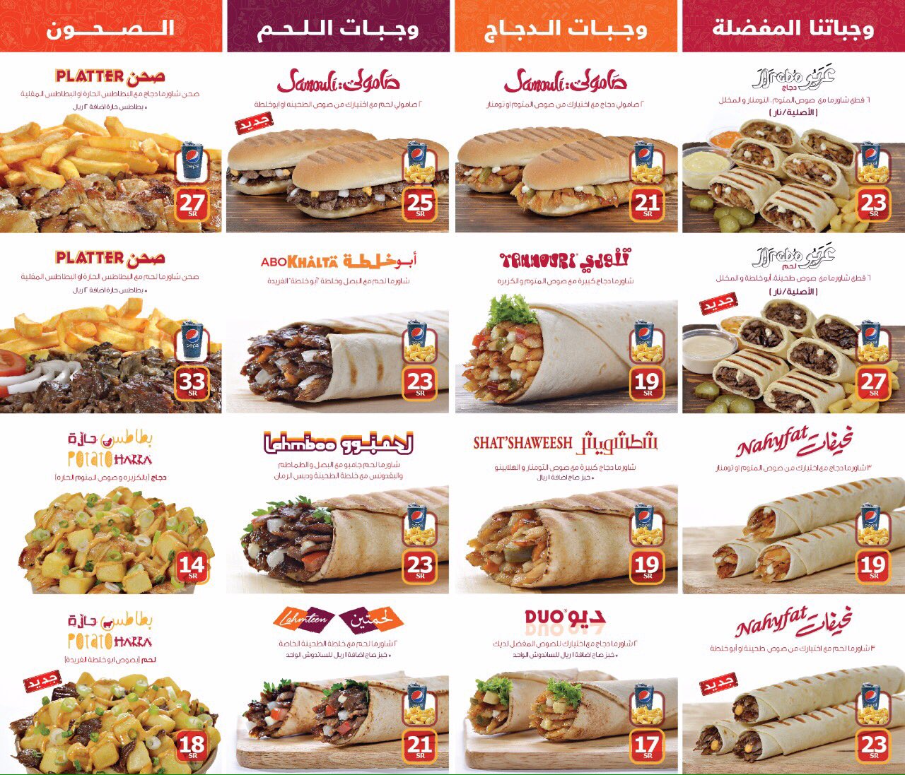 منيو شاورمر بالسعودية مع الأسعار مطاعم السعودية