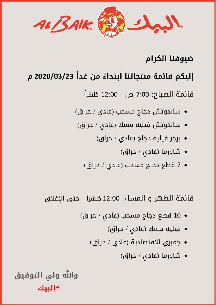 اوقات عمل مطعم البيك. مواعيد دوام البيك مطعم البيك في السعودية هذا هو سره مطعم البيك مطعم البيك يعتبر سلسلة مطاعم من اشهر سلاسل الوجبات السريعة المحلية في السعودية والتي بدأت تمتد الى دول. التحلية النخيل مول الرياض جاليري الرياض بارك بانوراما مول وغرناطة مول. ٨- سلم الفاتورة إلى اي فرد من فريق عمل البيك المتواجدين في.