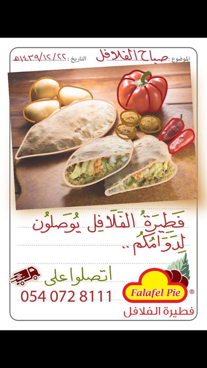 استلام مطعم شارع ٩ - Rue 9 Vector. حفر الباطن 232 كيلو. فلافل فرن بسعر 18 ريال سعودي.