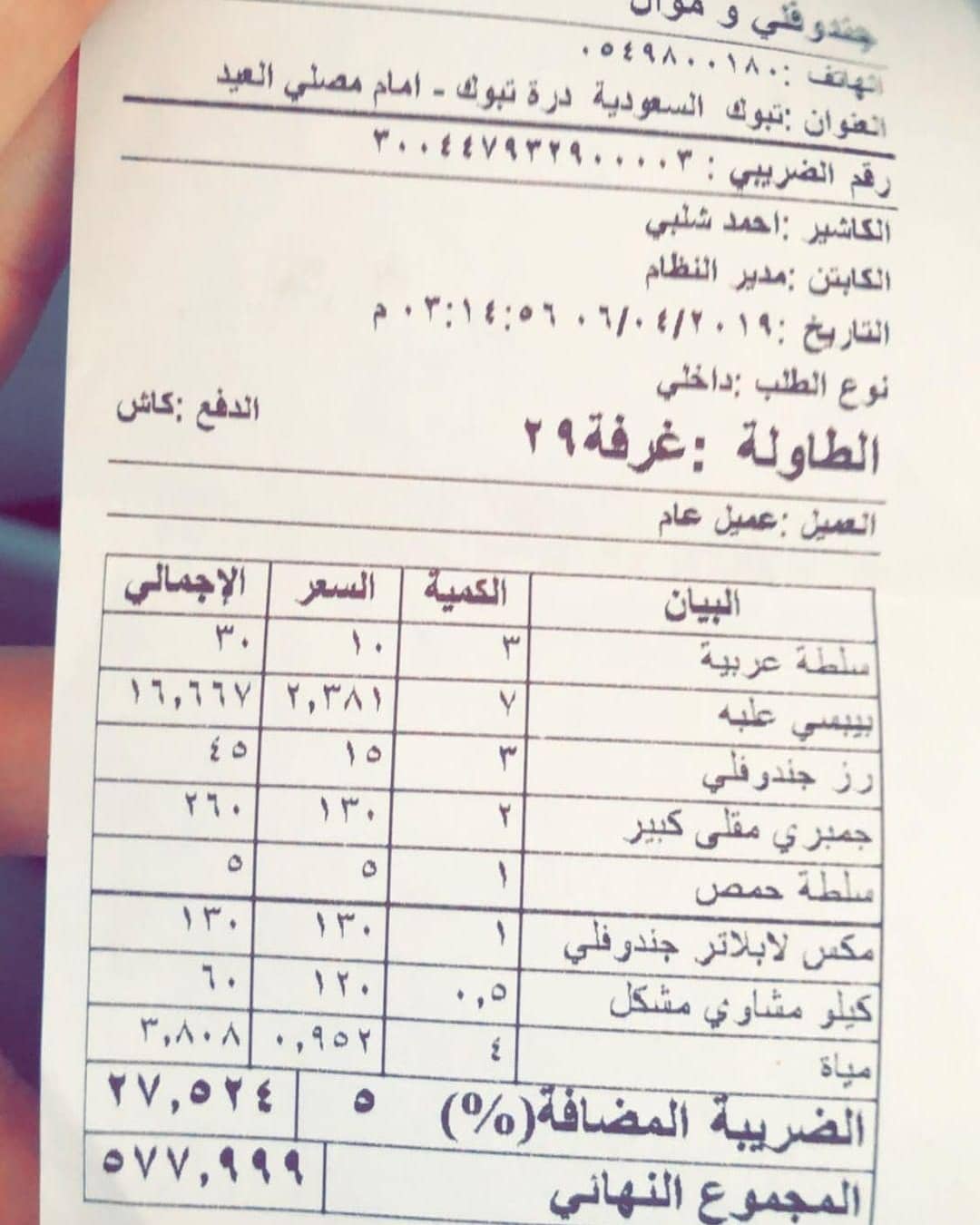 رقم مطعم جندوفلي تبوك