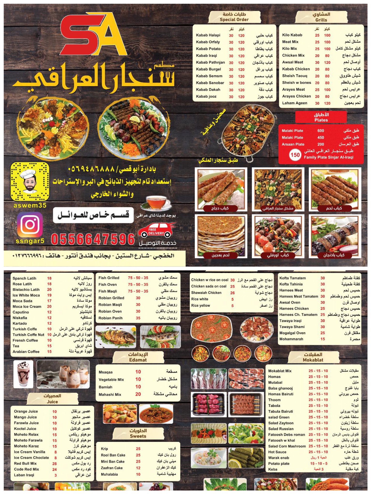 في سنجار نهتم بتحضير اطباقنا باستخدام أجود أنواع اللحوم البلدية والدجاج الطازج. رقم التوصيل 1734 3133 39423388. أفضل مطاعم الإفطار في الأحساء المملكة العربية السعودية.
