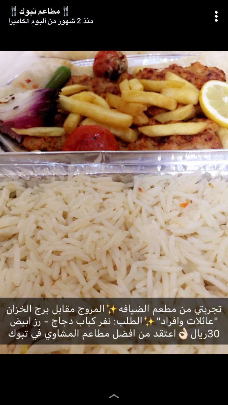 مطاعم تبوك On Twitter مطعم الضيافه المروج مقابل الخزان عائلات وافراد الطلب نفر كباب دجاج رز ابيض ب30ريال اعتقد من افضل مطاعم المشاوي بتبوك مطاعم تبوك Https T Co Tikkhemdvw
