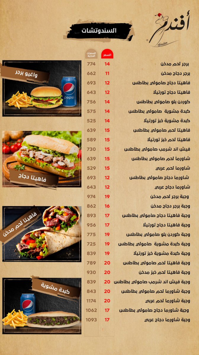 مطعم أفندم المنيو وراقام التواصل وحسابهم في الانستقرام واوقات العمل