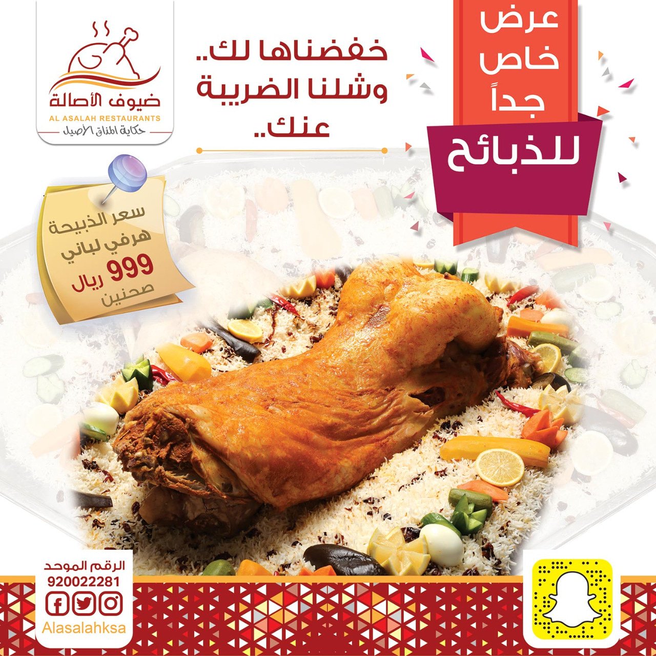 ضيوف الأصالة בטוויטר عرض الذبائح الررررهيب هرفي لباني 2 صحن 999 ريال من اليوم وحتى تاريخ 25 ابريل ضيوف الأصالة حائل حكاية المذاق الأصيل Https T Co Gehylosexn
