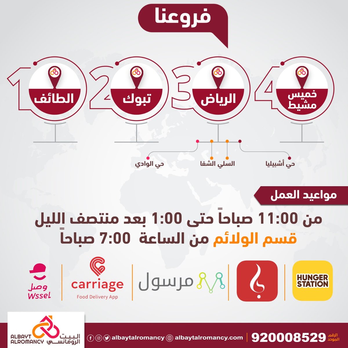 مطاعم البيت الرومانسي فروعنا. رقم مطعم ومطبخ الوادي المبارك في حائل على إستعداد تام لطبخ وتوصيل الولائم حي الشفاء مقابل مستوصف الساهر يعمل طوال أيام الاسبوع رقم الاتصال 0165416661 رتوصيل مطعم الوادي المبارك 0537606222. حراج حراج سعودي يحتوي على حراج لكل السلع وحراج السيارات وحراج العقار وحراج الأجهزة.