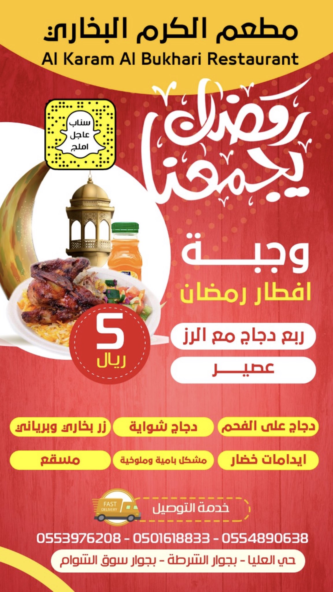مطعم الكرم البخاري Al Ulaya Umluj Saudi Arabia هاتف 966 50 161 8833