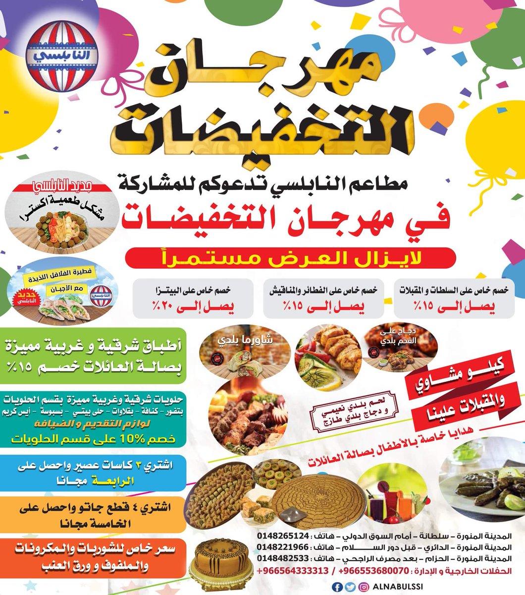 مطاعم النابلسي Auf Twitter عروضنا المميزة لا تنتهي الان زور احد فروع مطاعم النابلسي بالمدينة المنورة واستفد من مهرجان التخفيضات وتقدر تسوي طلبك من خلال الاونلاين من تطبيق هنقرستيشن Https T Co 7yhuqx3mh7 Https T Co 56t9xkevv4