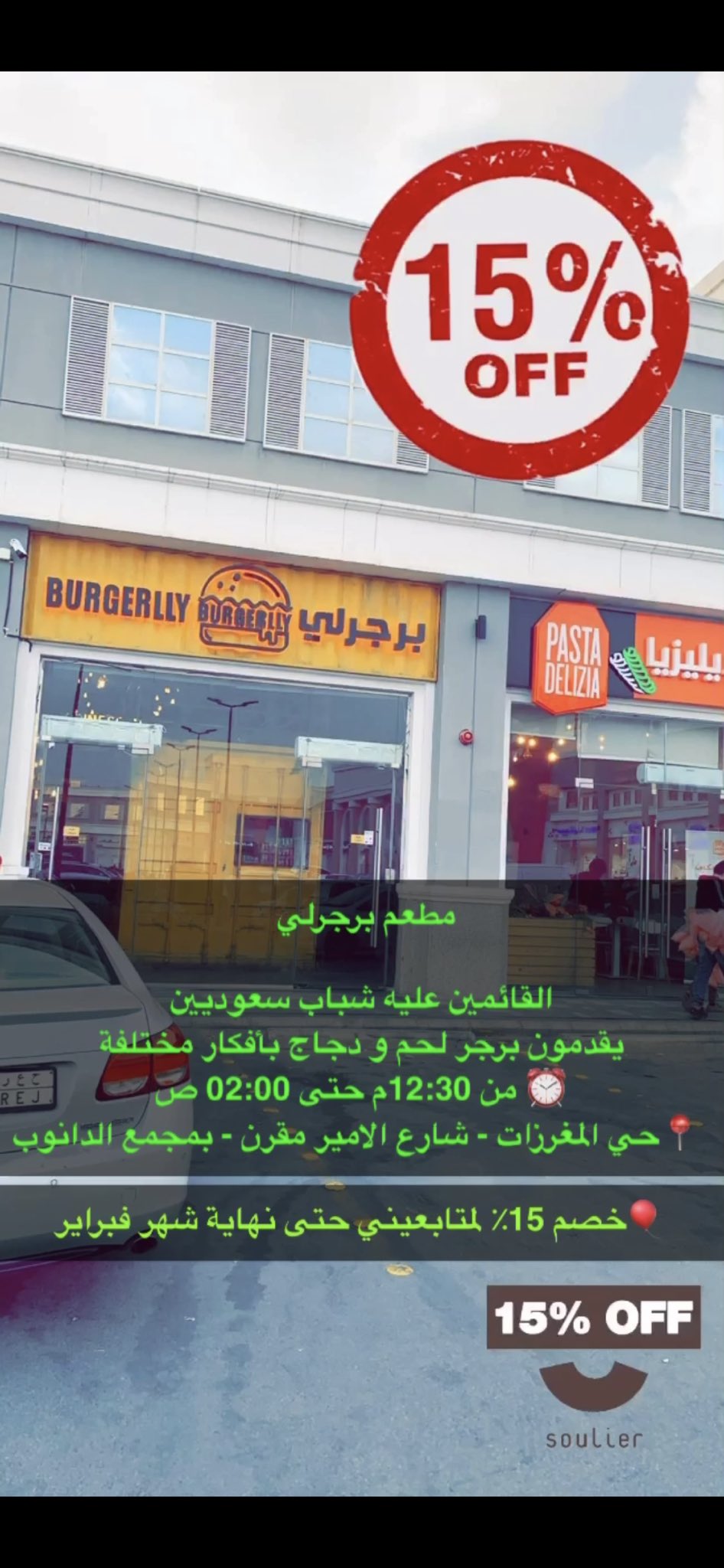 لايف الرياض V Twitter مطعم برجرلي Burgerlly القائمين عليه شباب سعوديين يقدمون برجر لحم و دجاج بأفكار مختلفة من 12 30م حتى 02 00 ص حي المغرزات شارع الامير مقرن بمجمع الدانوب افراد وعائلات مسموح الأطفال بدون بارتشن خصم 15 لمتابعيني حتى نهاية