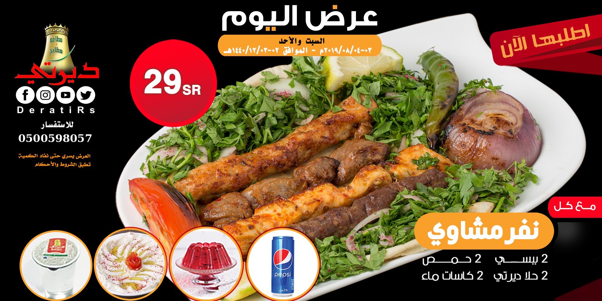 مطاعم ديرتي Derati On Twitter لعيونكم مددنا العرض يومين أرقام فروعنا شارع الشباب طريق النصر 0538339990 0118125666 0118101800 الدار البيضاء 0503000942 0112138777 0112138666 فرع العزيزية 0506220592 0114957742 0114957794 فرع الاسكان