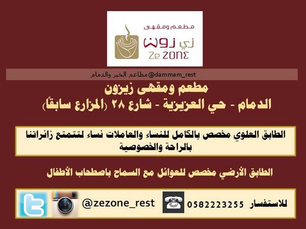 مطعم وكافيه زيزون On Twitter K33k4 Dammam Rest زيزون بالدمام حي العزيزية شارع ٢٨ المزارع سابقا زيزون للرقي مكان اوقات العمل من 7 30 صباحا 1 30 بعد منتصف الليل