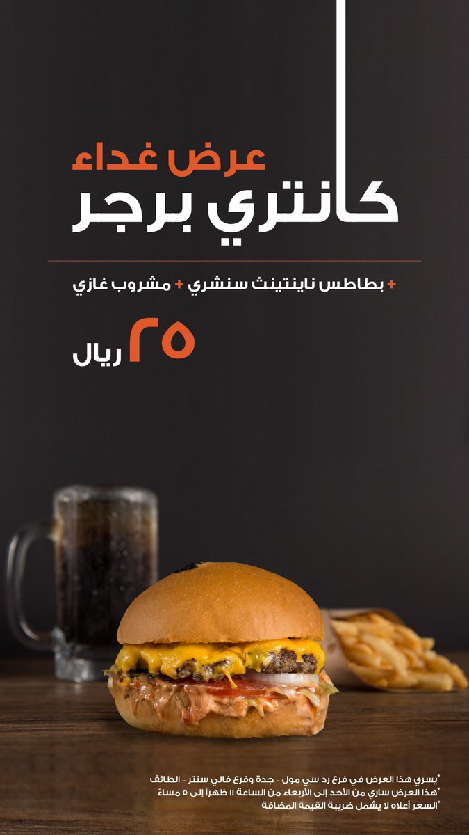 يستطيع كافة مواطنوا المملكة العربية السعودية تناول وجبات الغداء في مطعم سنشري برجر بشكل مجاني عند إيجاد الشخص الذي يكمل رقمهم الوطني إلى 90 باستخدام الرقمين الأخيرين فقط وذلك. عادة ما يكون المطعم مكتظا بالزبائن الذين يرغبون في تناول وجبة سريعة قبل العودة الى أشغالهم. ناينتينث سنشري برجر ب ٢٥ ريال كانتري برجر ب ١٩ ريال برجر صدر الدجاج ب ٢٤.