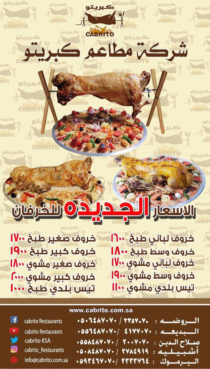 Cabrito L كبريتو V Twitter قائمة أسعار خرفان مطاعم كبريتو الجديدة