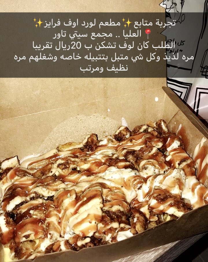 مطعم لورد اوف فرايز. الله يوفقكم بصورة ادق ممتاز ممتاز ممتاز بطاطس اكثر من رائع دجاج لذيذ صوصات مرررررة لذيذه التغليف شي آخر ورائع جدا نظافة ممتازة واكثر الموظفين اكثر. قائمة طعام مطعم شيب أوف فرايز الأردن متوفرة اون لاين على طلبات. Lord of Fries لورد اوف فرايز Tabuk Saudi Arabia.