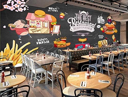 ورق جدران جداري ثلاثي الأبعاد مخصص حسب الطلب من ورق جدران سريع للمطاعم برجر الطعام خلفية أدوات الطعام لتزيين الحائط Amazon Ae