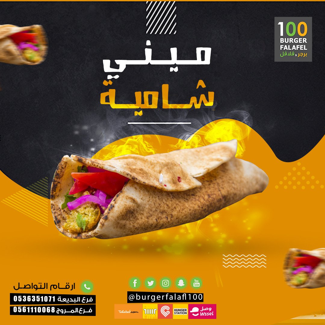 Burger Falafel 100 هل جربت الميني العربي في برجر فلافل مية الطعم غير فرع البديعة 0536351071 فرع حي لبن 0583888427 فرع المروج 0561110068 الرياض مطعم فلافل Burgerfalal100 Facebook